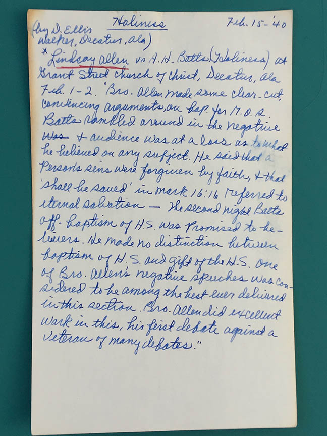 Lindsay Allen vs A. H. Batts (Holiness) at Grant Street Church of